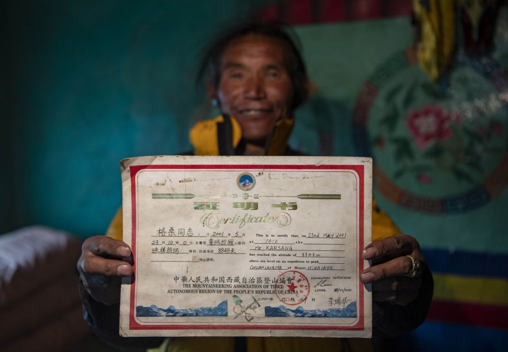 同樣曾上山當(dāng)背夫的格桑,選擇了另一條路:和登山愛好者一起登頂珠峰。