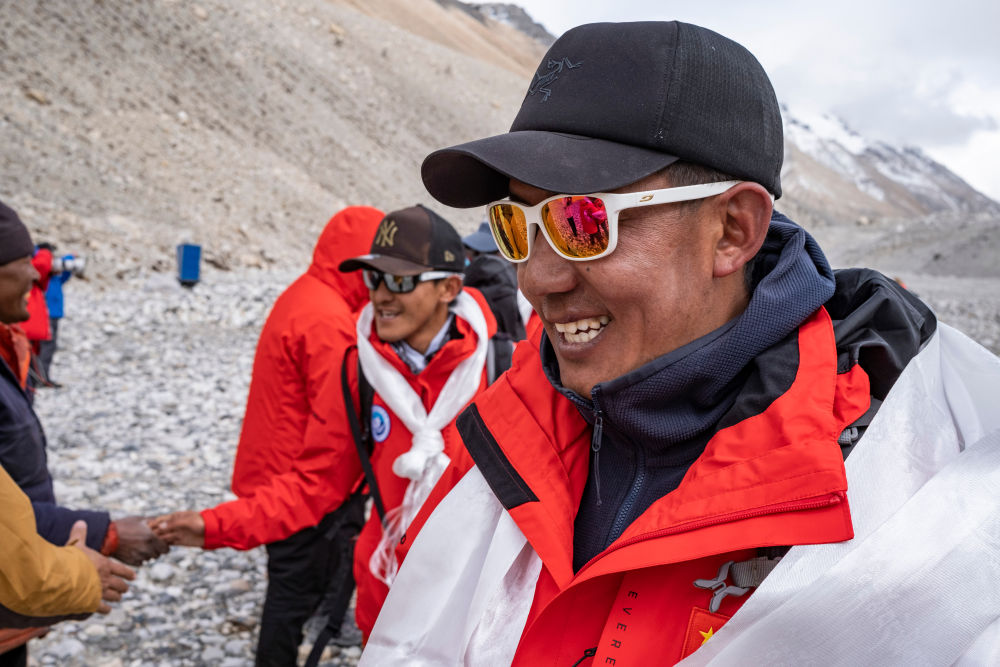德慶歐珠和隊(duì)友安全返回珠峰大本營(yíng)(2022年5月4日攝)。