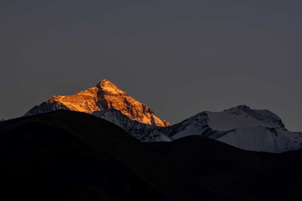 日落時(shí)分的珠峰(2022年5月10日攝)。