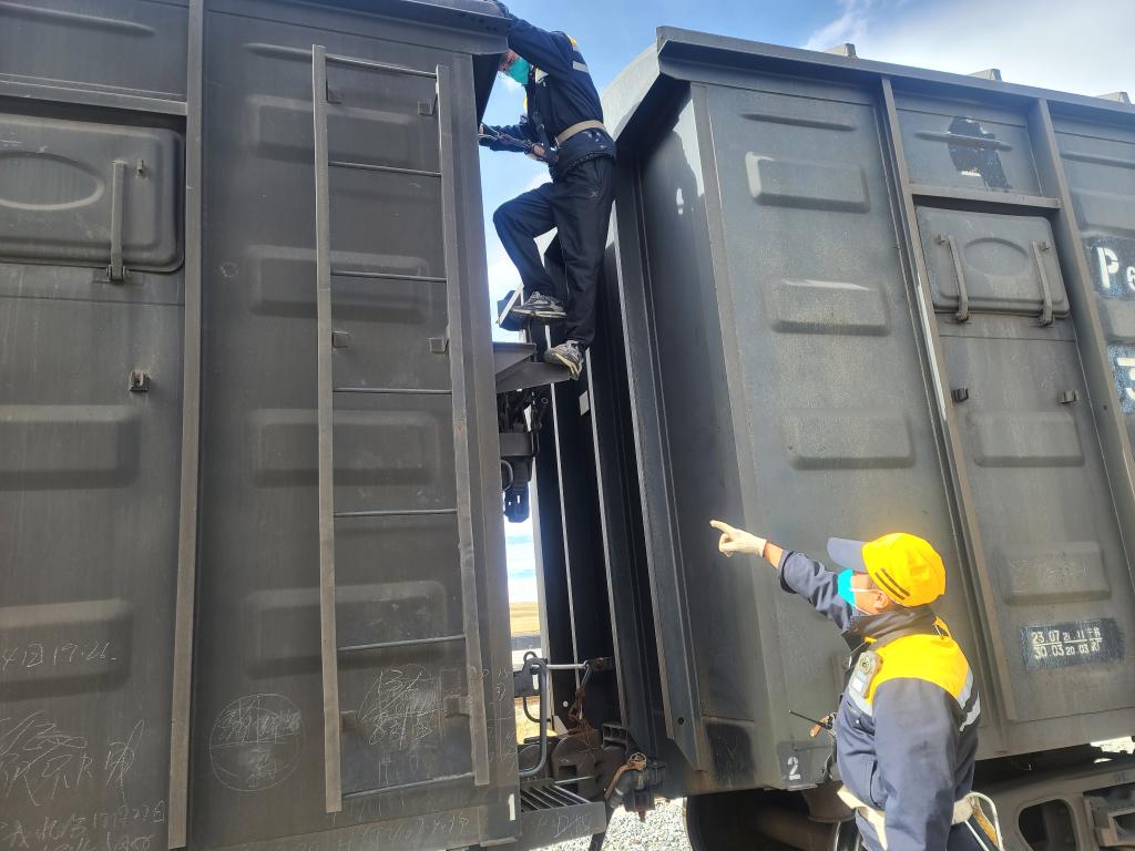 平均海拔超過4500米的西藏那曲市色尼區(qū)剛下完一場大雪,寒風(fēng)呼嘯。重復(fù)爬車下車,彎腰摘接風(fēng)管,大聲準(zhǔn)確喊出聯(lián)控用語,緊接著撤除車列的防溜措施,青藏鐵路那曲火車站調(diào)車長達(dá)瓦次仁忙完一組調(diào)車作業(yè)后,嘴唇發(fā)紫、臉頰通紅,需要馬上吸氧才能緩過勁。