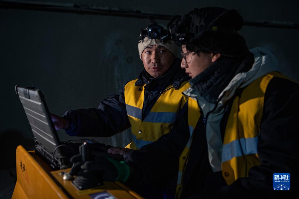 羅布(左)和同事在進(jìn)行鋼軌探傷作業(yè)(1月12日攝)。新華社記者 孫非 攝