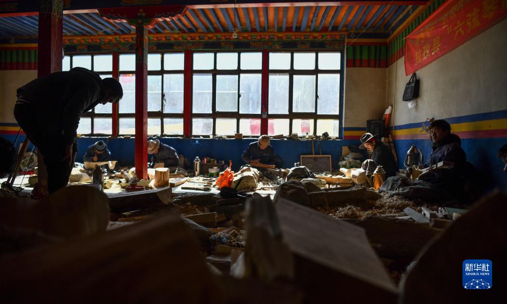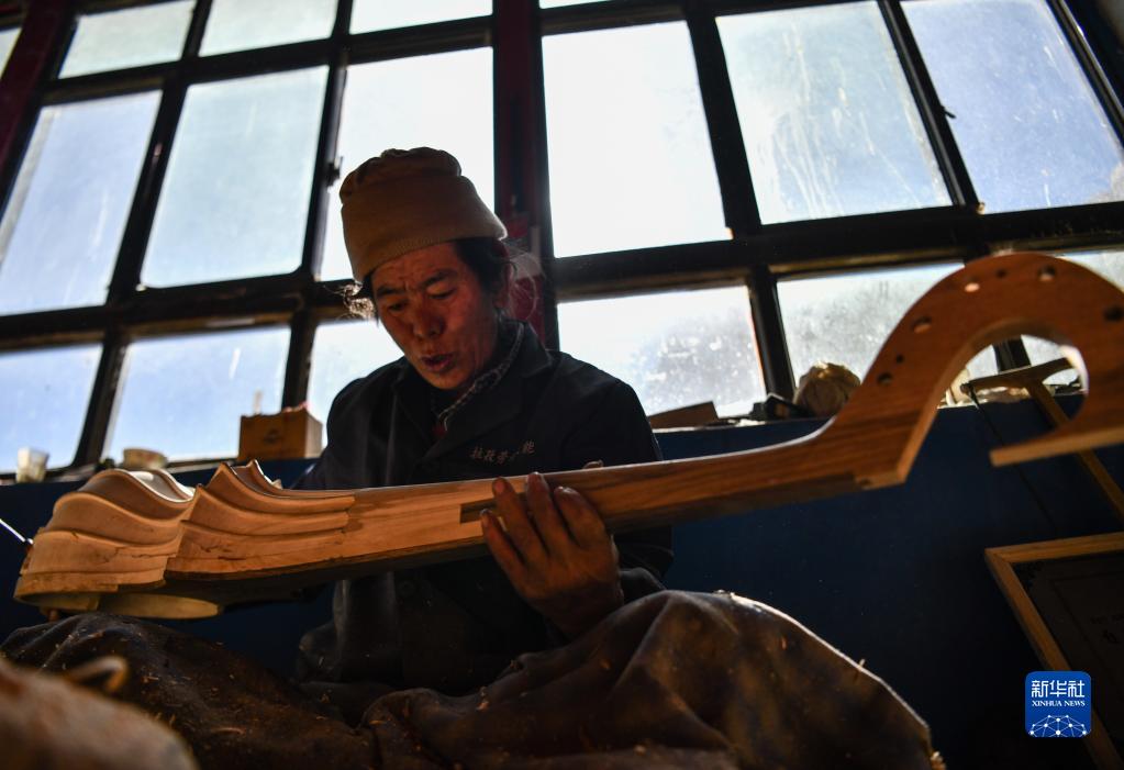 合作社的工匠在制作扎念琴(1月19日攝)。新華社記者 晉美多吉 攝