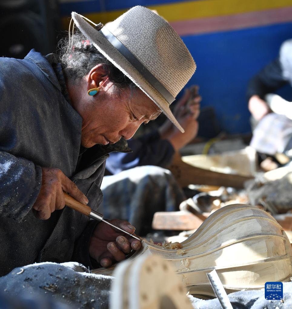 西藏日喀則拉孜縣有著悠久的扎念琴制作歷史。2014年,“扎念琴制作技藝”入選第四批國(guó)家級(jí)非物質(zhì)文化遺產(chǎn)代表性項(xiàng)目名錄。今年47歲的索朗瓊拉是該項(xiàng)目的傳承人。他從14歲開(kāi)始跟隨父親學(xué)藝,六年后出師。2010年,他和朋友們一起成立了制作扎念琴的民族手工業(yè)農(nóng)民專業(yè)合作社。
