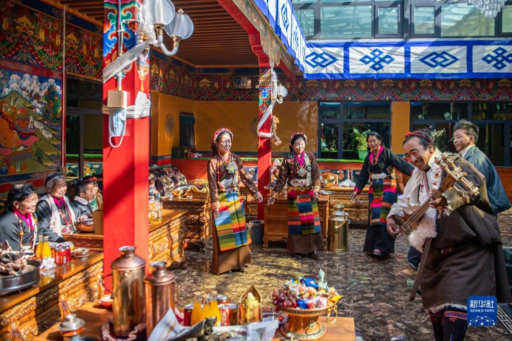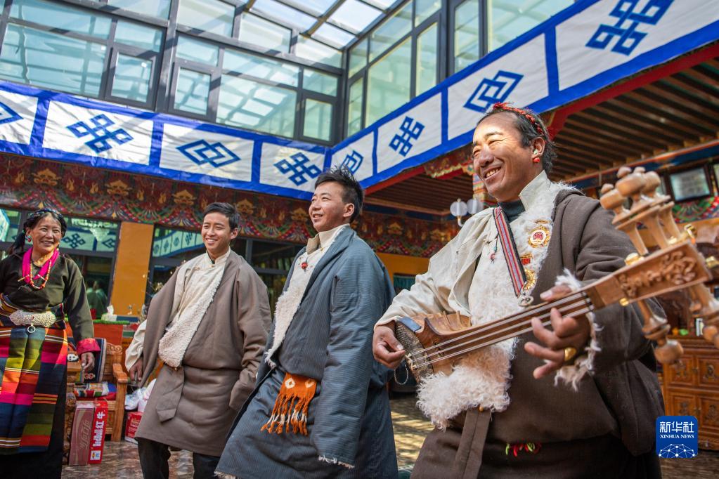 在藏歷農(nóng)家年的家庭聚會(huì)中,人們彈奏扎念琴(1月23日攝)。新華社記者 孫非 攝