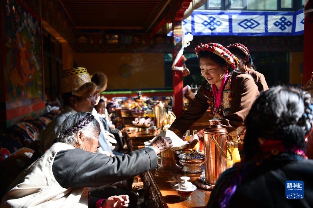 “小時(shí)候過年也有羊頭、切瑪可以吃。”次旦老人說,“但和今天不同的是,即便是一年中最豐盛的一頓飯,我們也只能吃兩口嘗個(gè)味道,沒辦法敞開肚子吃飽?!?/p>