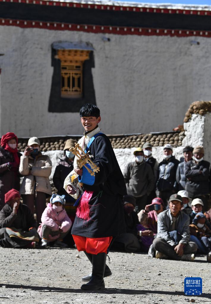 西藏日喀則市芒普鄉(xiāng)普村文藝演出隊(duì)的演員在表演(1月21日攝)。新華社記者 晉美多吉 攝