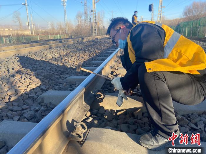 “春運期間,正是鋼軌折斷多發(fā)期,一定要仔細檢查線路的高低狀態(tài),一旦有異常必須立刻記錄解決,決不能馬虎。”走到線路防斷重點區(qū)段時,中國鐵路青藏集團有限公司西寧工務段湟源線路車間檢查工區(qū)工長侯鵬俯身趴在鋼軌上,仔細觀察并叮囑,锃亮的鋼軌頂面反射著刺眼的白光,在他的臉上一閃一閃。