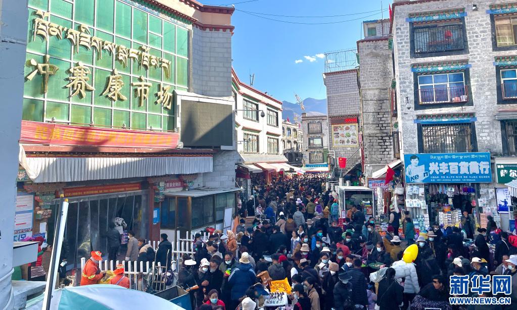 農(nóng)歷春節(jié)年味兒尚未散去,拉薩街頭張燈結(jié)彩,年貨市場各種商品琳瑯滿目,置辦年貨的人摩肩接踵。古城在歡樂祥和的氛圍中喜迎藏歷水兔新年(2月21日)。