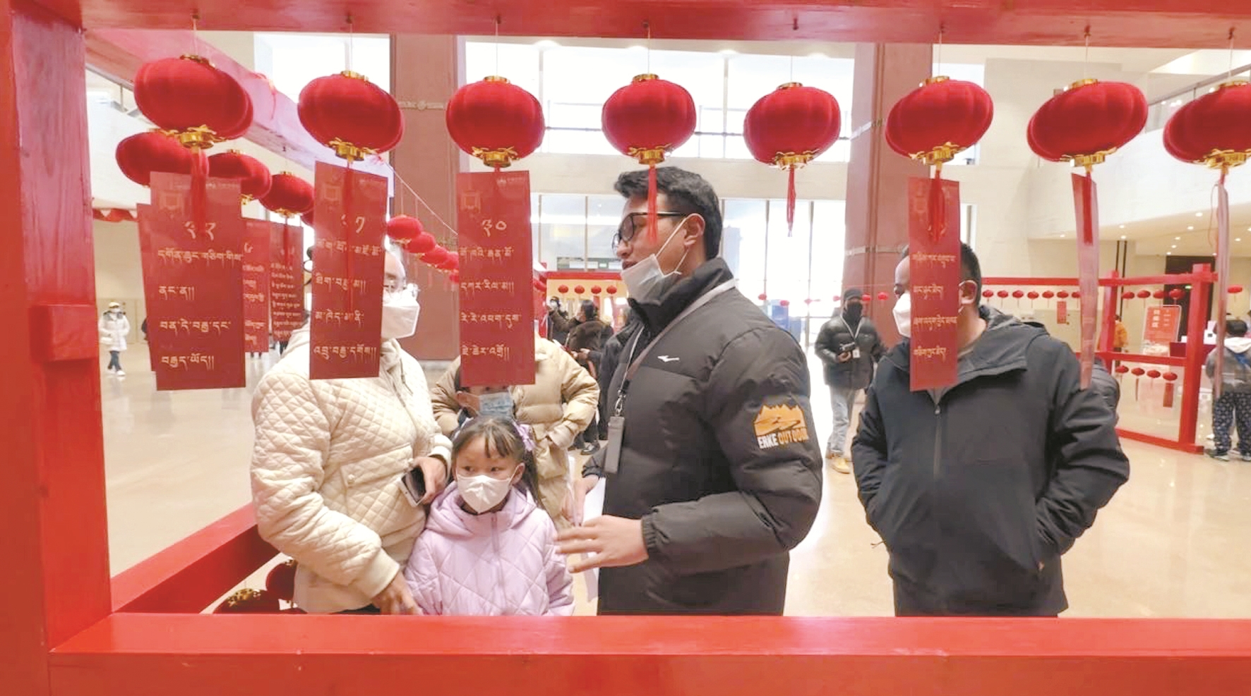 圖為西藏博物館內(nèi)市民游客聚在一起猜燈謎。拉薩融媒記者 滿文妍攝