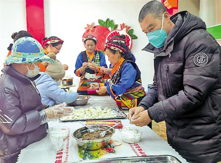 圖為日喀則市桑珠孜區(qū)吉培社區(qū)各族群眾在社區(qū)食堂包餃子、包湯圓。 本報記者 陳林 攝
