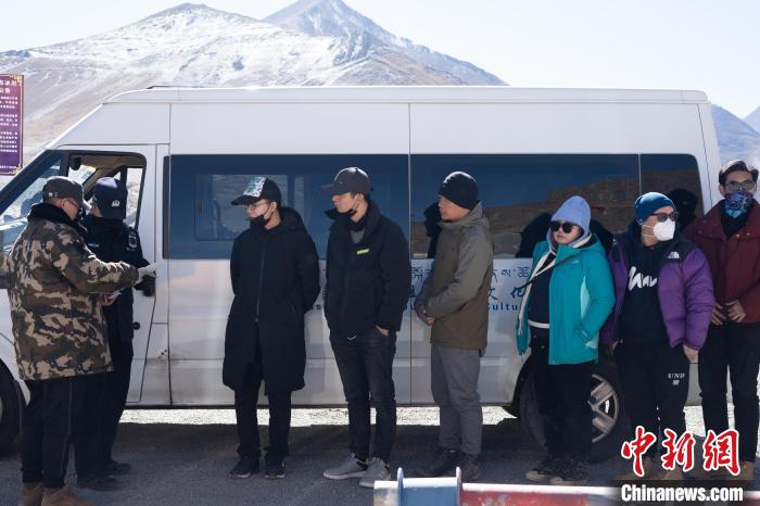 圖為游客排隊(duì)接受檢查證件。 貢嘎來松 攝