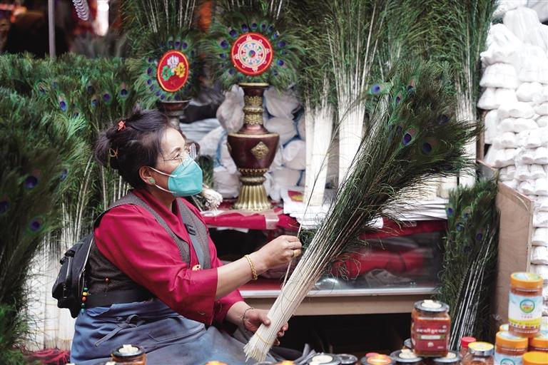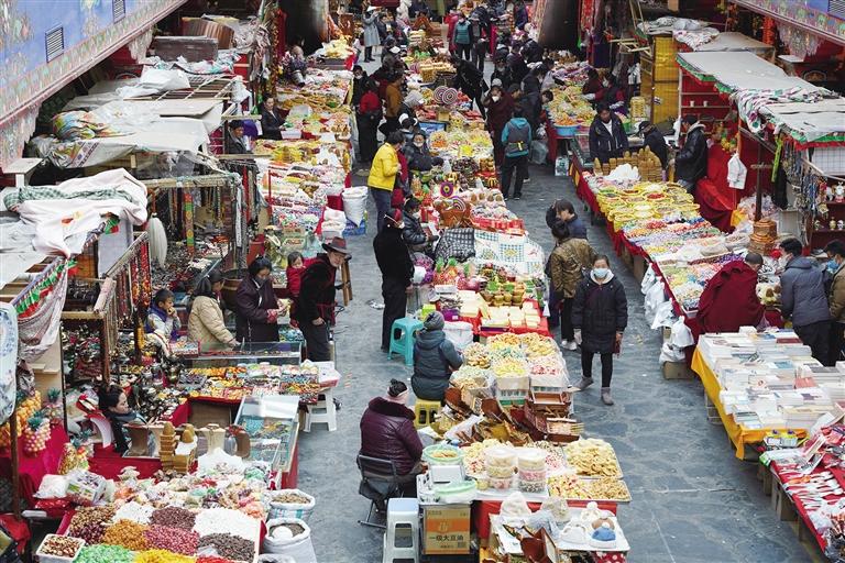 藏歷新年臨近,拉薩街頭置辦年貨的人群熙熙攘攘,大街小巷張燈結(jié)彩,古城街巷洋溢著濃濃的年味兒。八廓商城年貨會、沖賽康批發(fā)市場作為置辦年貨的首選地,從早到晚都是商賈云集、人聲鼎沸,一番熱鬧景象。