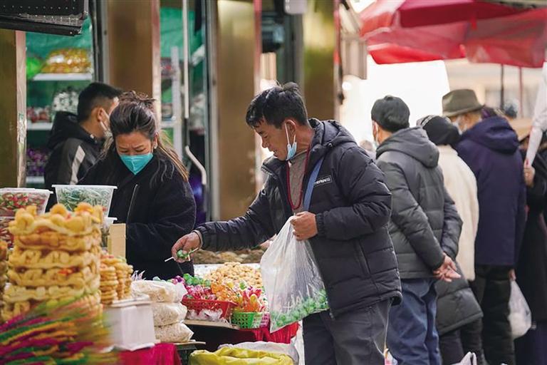 記者注意到,沖賽康批發(fā)市場一樓干果區(qū)吸引了不少市民駐足購買?!凹胰硕枷矚g瓜子、開心果等干果,所以就多買點?!笔忻裱胱谛χf,“每年藏歷新年前,我們都會來買年貨,這里品種多,價格還實惠?!庇浾咦咴L發(fā)現(xiàn),今年的年貨市場,瓜子、紅棗、葡萄干、柿餅、開心果、核桃、腰果、夏威夷果等是該市場最受歡迎的品類。