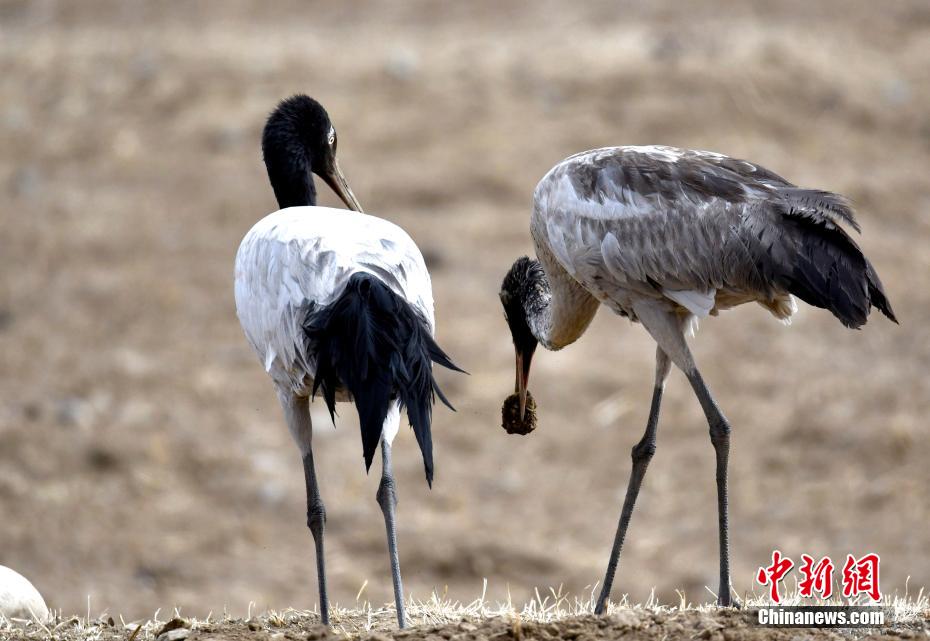 2月19日,西藏拉薩堆龍德慶區(qū)楚布溝內(nèi)的一處農(nóng)田里,一群黑頸鶴正在覓食。時(shí)下,在雅魯藏布江中游河谷一帶的農(nóng)田和水域,黑頸鶴等眾多候鳥或覓食或棲息,成為初春一抹亮麗色彩。黑頸鶴是國家一級(jí)保護(hù)動(dòng)物,也是唯一生活、繁殖在高原的鶴類。在河谷地帶越冬的黑頸鶴一直要待到三四月份才會(huì)北上到藏北,開啟新的生活。