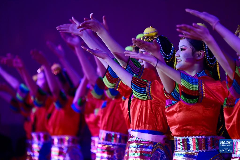 2月21日,學(xué)生在西安市浐灞第一中學(xué)舉行的藏歷新年團拜活動上表演藏族舞蹈。新華社記者 李一博 攝