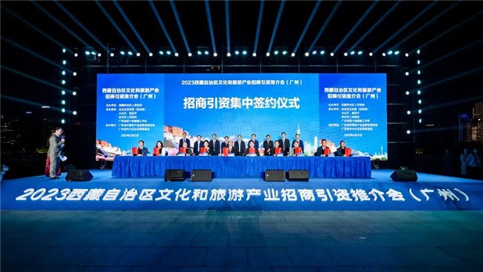 西藏招商引資工作人員與廣東省文旅企業(yè)進(jìn)行了洽談對(duì)接,共簽約文化旅游類項(xiàng)目11個(gè),總投資68.43億元。