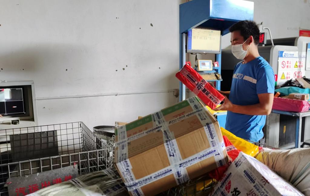 工作人員在日喀則市中通快遞網(wǎng)點(diǎn)分揀包裹。新華社記者劉洲鵬 攝