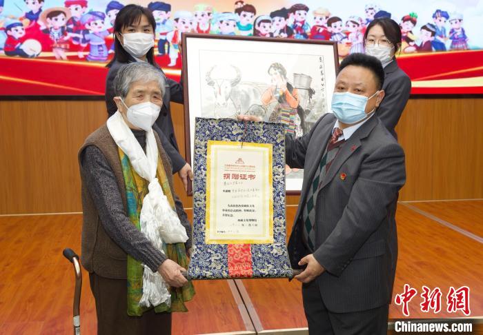 圖為活動當(dāng)天知名畫家吳茜向中國藏學(xué)研究中心西藏文化博物館捐贈西藏主題作品。中國藏學(xué)研究中心供圖