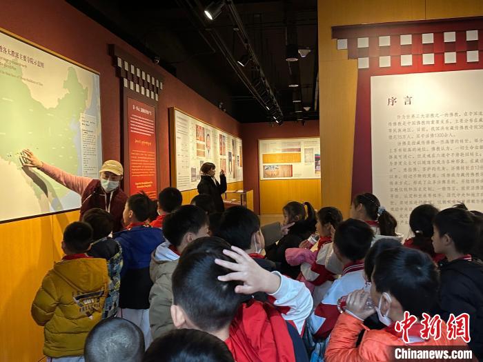 圖為活動當(dāng)天西藏文化博物館的志愿者們帶領(lǐng)小朋友參觀館內(nèi)展覽。李晗雪 攝