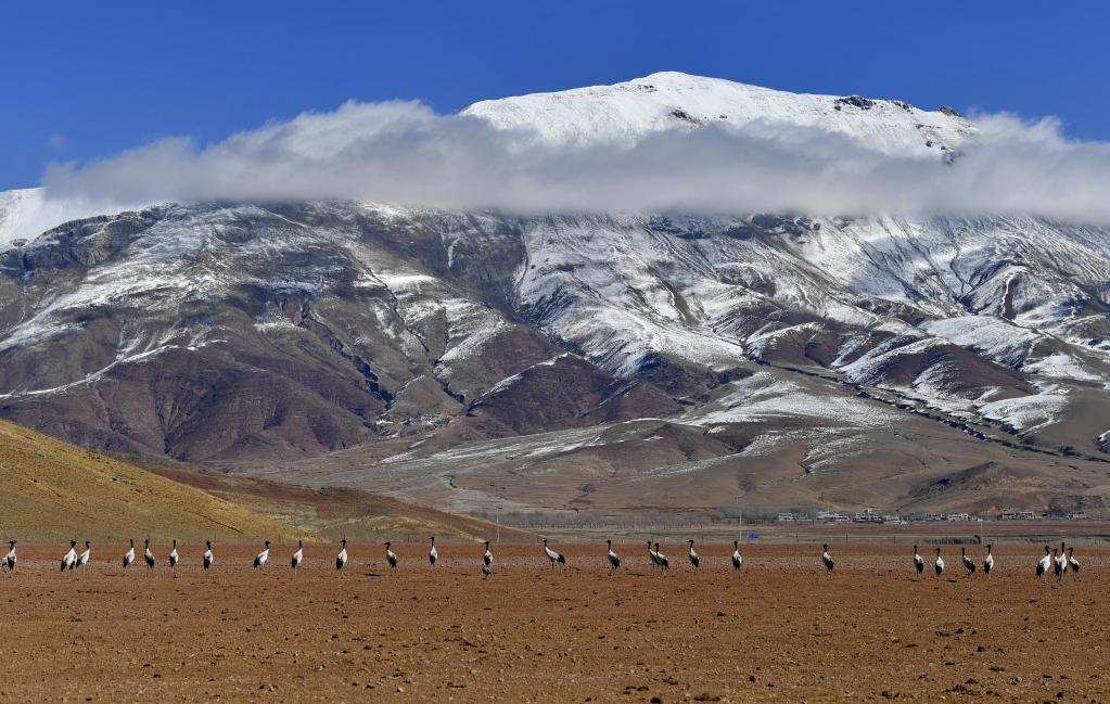 黑頸鶴是國(guó)家一級(jí)保護(hù)動(dòng)物,主要棲息在海拔2500米至5000米的高原、草甸、沼澤地帶。拉薩北部的林周縣平均海拔約4200米,是黑頸鶴的主要越冬地之一。