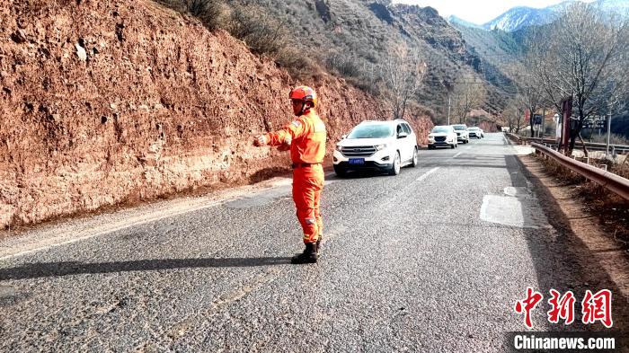 圖為昌都市卡若區(qū)森林消防中隊(duì)“火焰藍(lán)”志愿服務(wù)隊(duì)指揮過往車輛安全通行。 卡若區(qū)森林消防中隊(duì)“火焰藍(lán)”志愿服務(wù)隊(duì)供圖