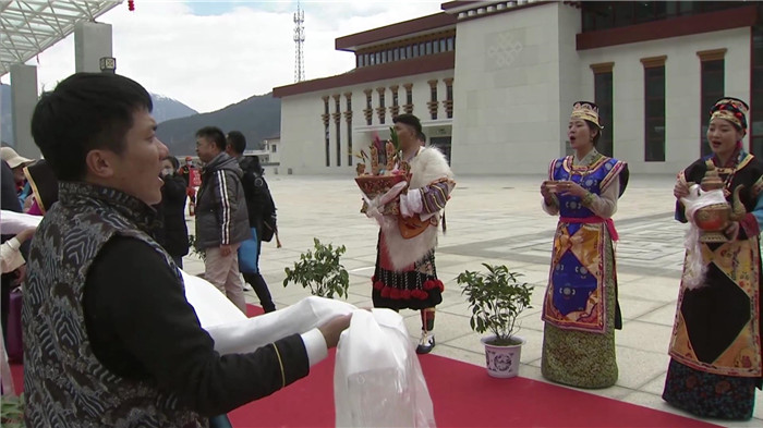 在歡迎儀式上,漂亮的工布姑娘唱起了歌,帥氣的工布小伙端起了香醇的青稞酒,副市長(zhǎng)段剛輝為游客們獻(xiàn)上潔白的哈達(dá),對(duì)遠(yuǎn)道而來(lái)的客人表示熱烈的歡迎和誠(chéng)摯的祝福,并在致辭中向游客們介紹了林芝的自然風(fēng)光和民俗文化。
