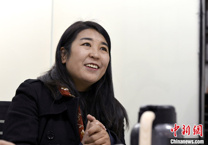 3月2日,德慶玉珍在西藏拉薩接受采訪。 中新社記者 李林 攝