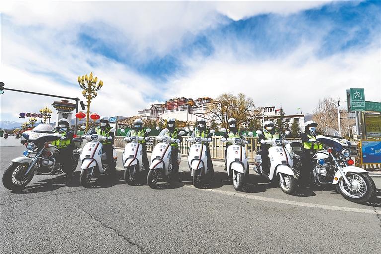 拉薩市公安局交警支隊城北大隊女子中隊交警颯爽英姿。唐斌 攝