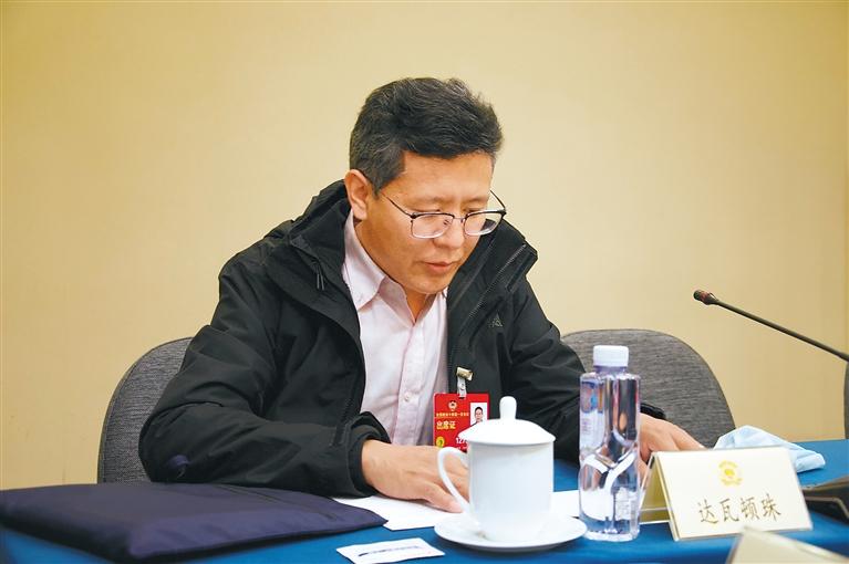 圖為達瓦頓珠參加農業(yè)界小組討論。 記者 旦增蘭澤 攝