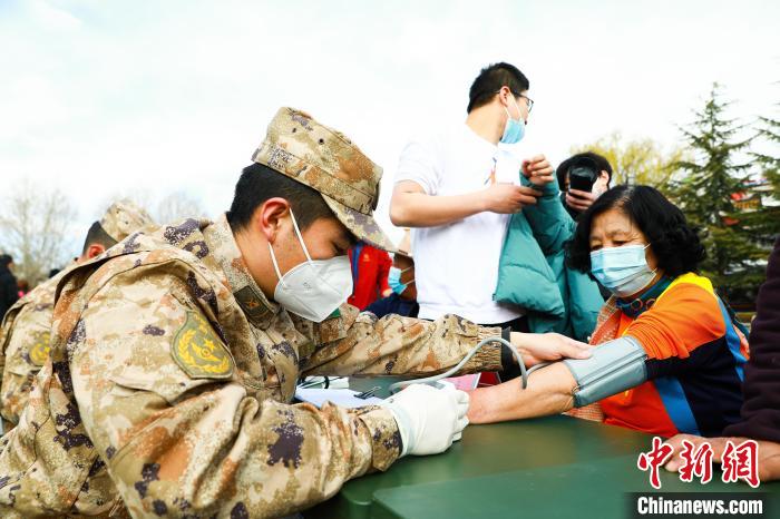 圖為官兵為民眾測量血壓。 拉薩警備區(qū)某團供圖