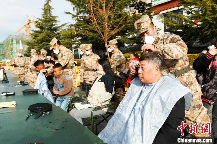 圖為官兵為民眾義務理發(fā)。 拉薩警備區(qū)某團供圖