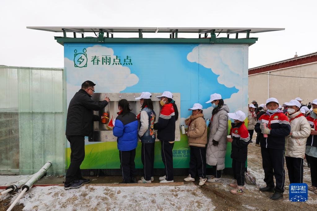 3月21日,那曲市色尼區(qū)香茂鄉(xiāng)小學的同學們在新啟用的凈水站打水。新華社記者 姜帆 攝