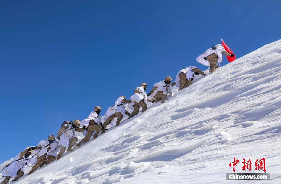 3月21日,阿里軍分區(qū)某邊防團(tuán)巡邏官兵翻越冰雪達(dá)坂向點(diǎn)位前行。劉曉東 攝