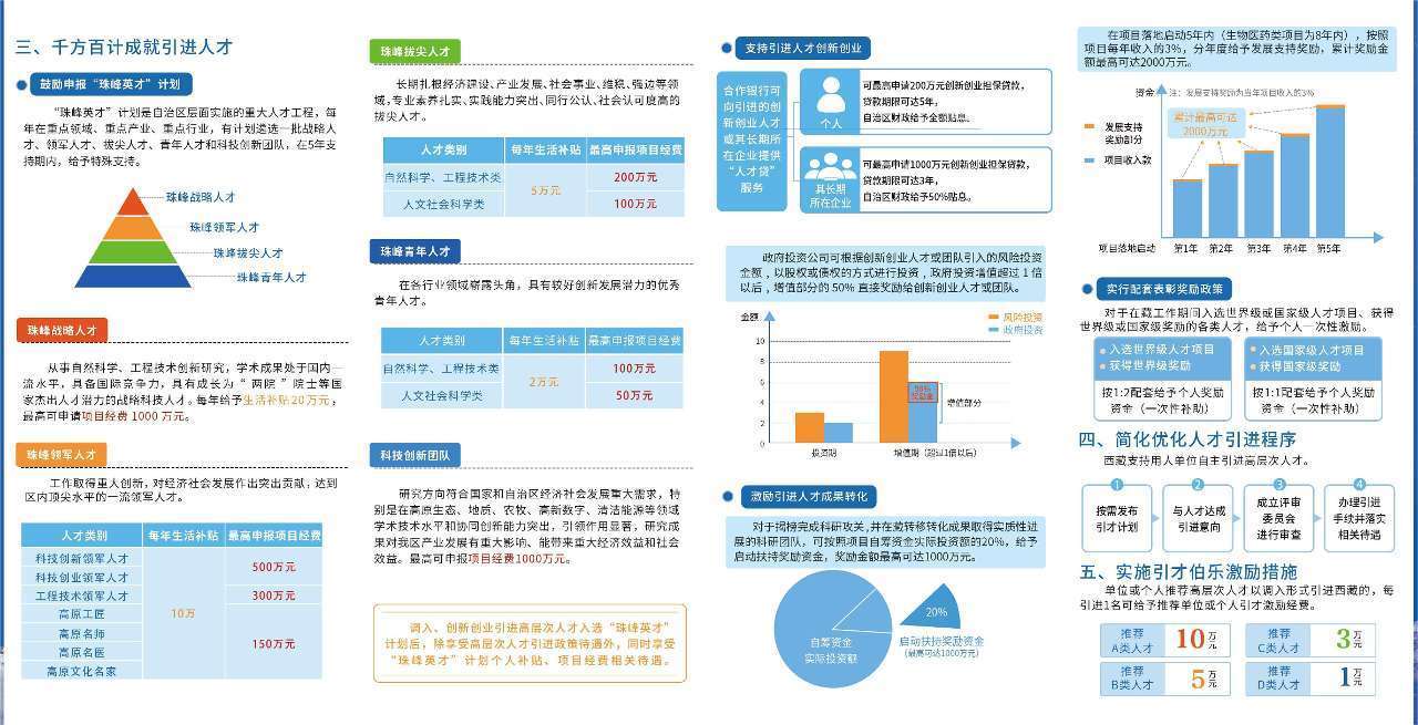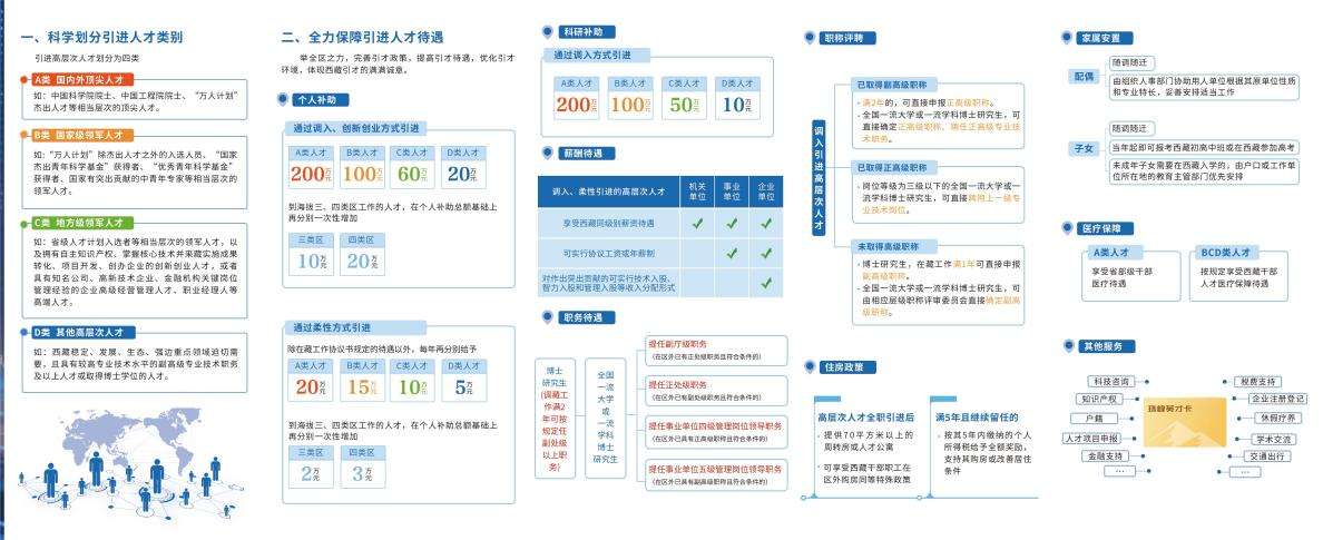 據(jù)悉,近年來(lái),西藏自治區(qū)深入實(shí)施人才“育、引、用、留”四大工程,制定出臺(tái)了《關(guān)于加強(qiáng)和改進(jìn)新時(shí)代西藏人才工作的若干措施(試行)》,科學(xué)劃分引進(jìn)人才類(lèi)別,將引進(jìn)高層次人才劃分為A、B、C、D四類(lèi)。在個(gè)人補(bǔ)助、科研補(bǔ)助、薪酬待遇、職務(wù)待遇、職稱(chēng)評(píng)聘、住房政策、家屬安置、醫(yī)療保障等方面全力保障引進(jìn)人才待遇。同時(shí),千方百計(jì)成就引進(jìn)人才,支持引進(jìn)人才創(chuàng)新創(chuàng)業(yè),激勵(lì)引進(jìn)人才成果轉(zhuǎn)化,實(shí)行配套表彰獎(jiǎng)勵(lì)政策。此外,在簡(jiǎn)化優(yōu)化人才引進(jìn)程序、實(shí)施引才伯樂(lè)激勵(lì)措施方面均有明確政策。