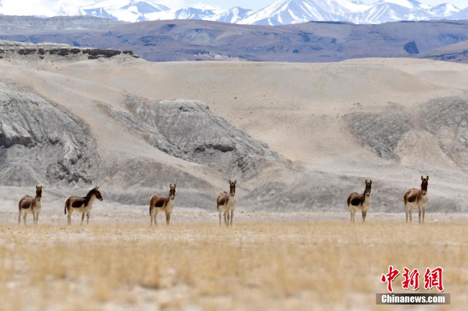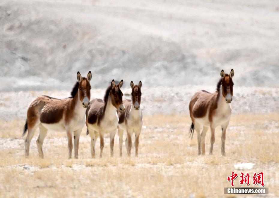 4月10日,西藏阿里地區(qū)札達(dá)縣拍攝到的藏野驢。