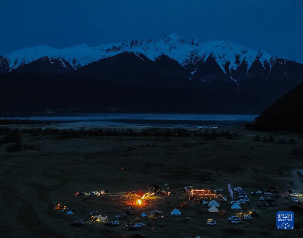 當日,西藏舉辦“巴松錯漂流露營大會”。春日里的巴松錯湖水清澈,雪山環(huán)繞,景色宜人,吸引了來自全國各地的游客到此體驗露營生活。