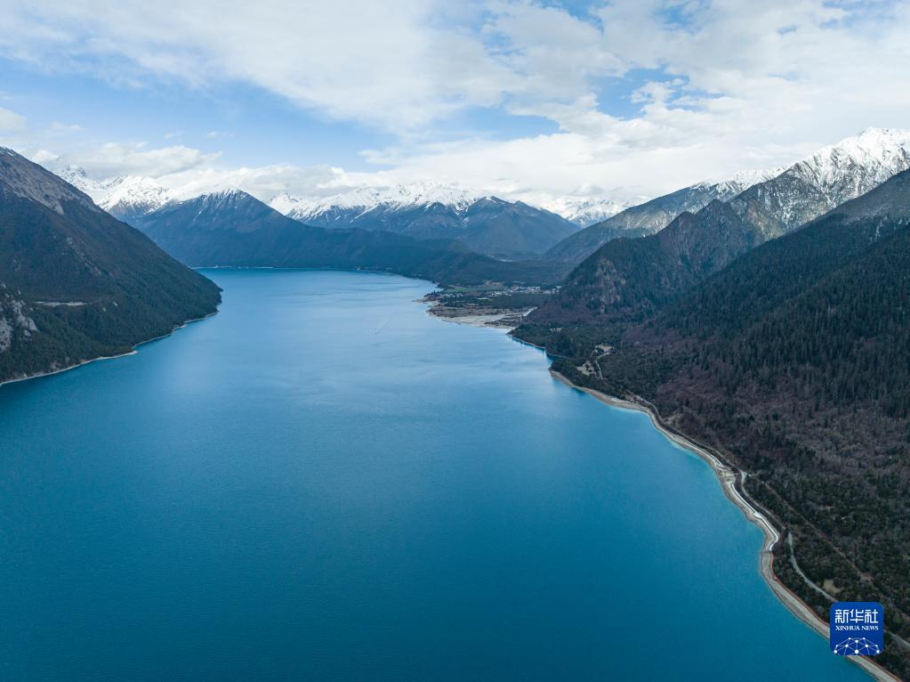 這是4月15日拍攝的巴松錯風光(無人機照片)。新華社記者 孫非 攝