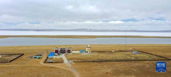 俯瞰中國科學院納木錯多圈層綜合觀測研究站(無人機照片,4月13日攝)。新華社記者 姜帆 攝