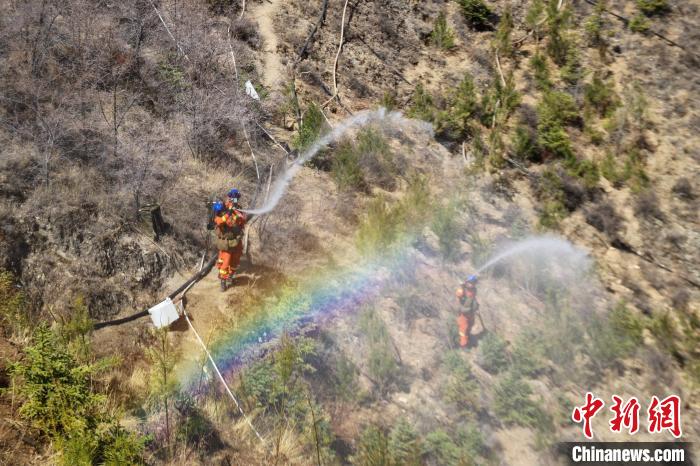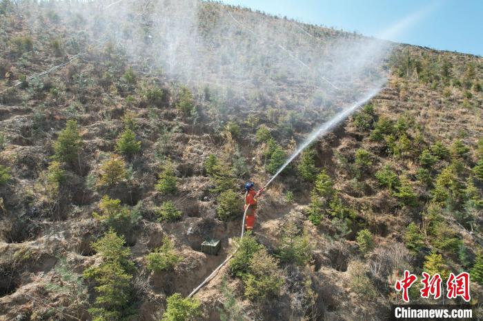 圖為演練中,消防員進(jìn)行高山滅火。羅士鑫 攝