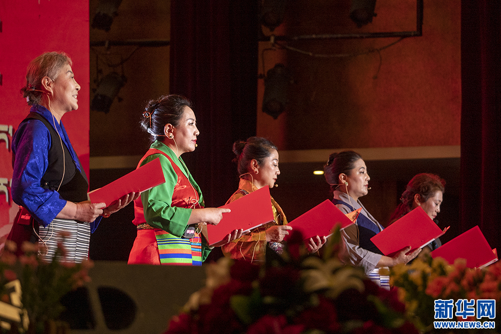 4月23日,拉薩萌升老年大學(xué)學(xué)員在“夕陽紅”西藏老年閱讀活動現(xiàn)場朗誦。新華網(wǎng) 旦增努布 攝