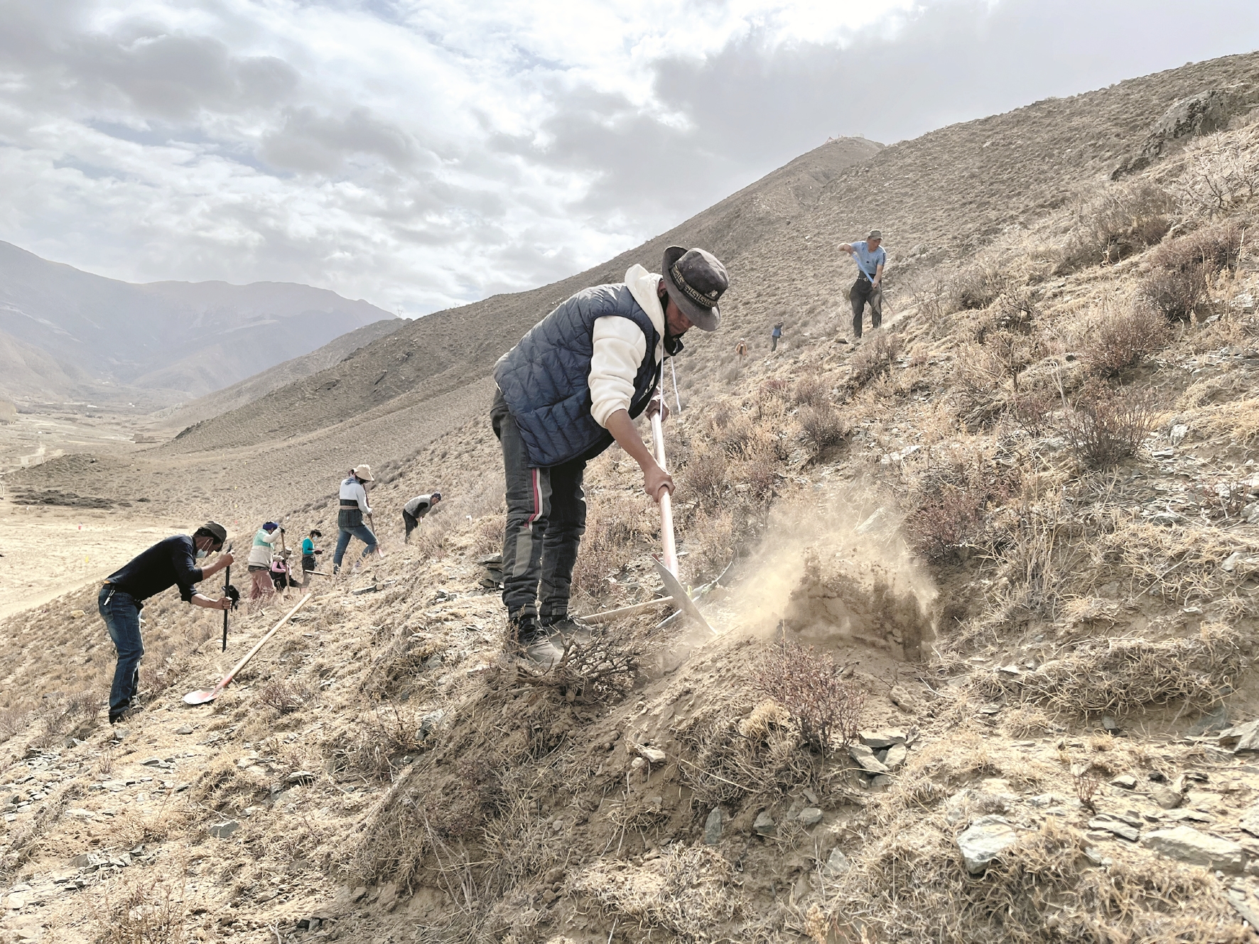 4月,正是一年春光好。記者來到曲水縣才納鄉(xiāng)才納村3-2號(hào)綠化造林項(xiàng)目點(diǎn)看到,工人們正在加緊挖坑、客土。該植樹點(diǎn)平均坡度在45度左右,有的地方甚至接近60度。在陡峭的坡面上挖坑、運(yùn)樹、栽植需要花費(fèi)大量的心血和體力。但不管山有多高、坡有多陡,按時(shí)節(jié)、高質(zhì)量地把樹苗種下的生態(tài)理念已經(jīng)在每一個(gè)植樹人心中落地生根。