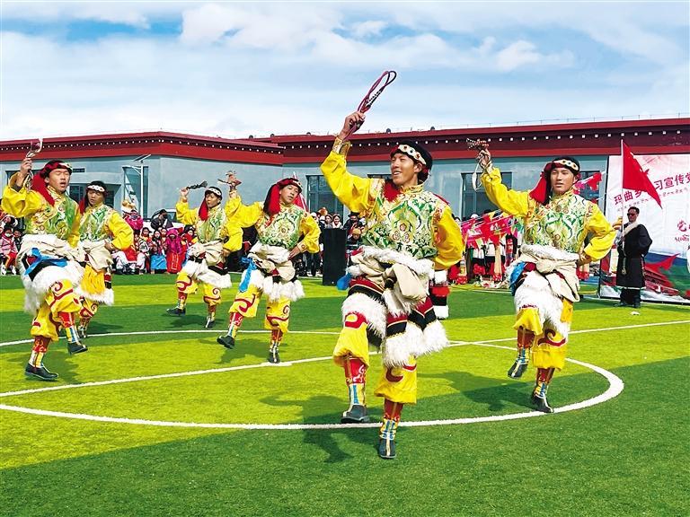 圖為那曲市安多縣瑪曲鄉(xiāng)選手在進行歌舞比賽。次旺卓瑪 本報記者 卞琳琳 攝