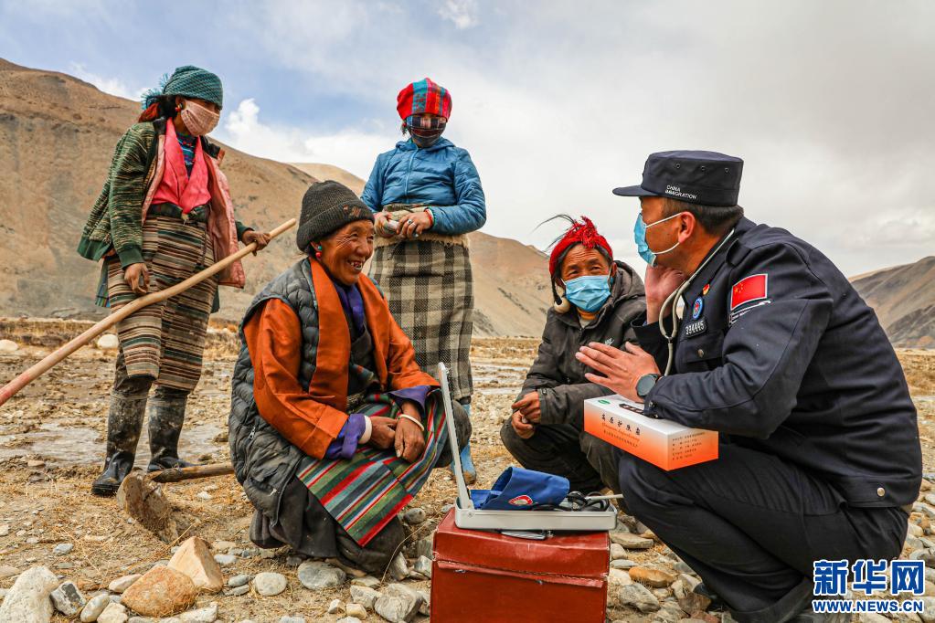 珠峰邊境派出所民警前往轄區(qū)為正在農作的群眾義診,并為他們發(fā)放藥品。
