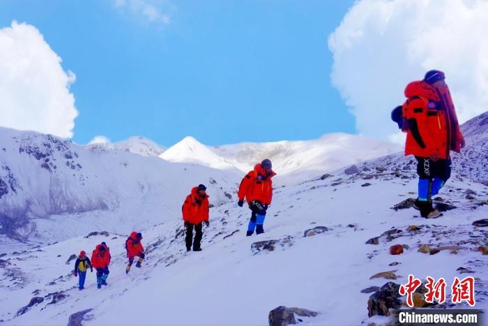 國(guó)家高山救援拉薩大隊(duì)隊(duì)員向海拔6010米洛堆峰進(jìn)發(fā)?!〖馈z
