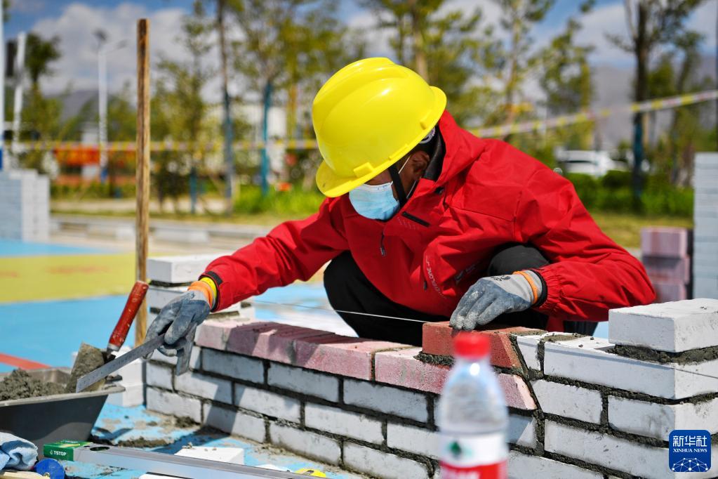 5月10日拍攝的西藏自治區(qū)第一屆技工(職業(yè))院校職業(yè)技能大賽砌筑比賽現(xiàn)場(chǎng)。新華社記者 張汝鋒 攝