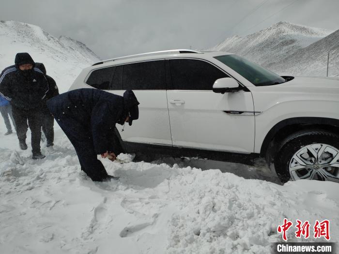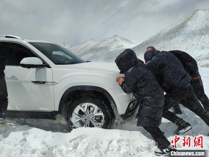 民警隨即打火發(fā)動(dòng)警車,行至被困車輛前面,利用拖車?yán)K連接警車與被困車輛,其余救援人員雙手搭上車輛用力向前推,“一、二、三,加油!”“動(dòng)了,動(dòng)了,車子可以向前移動(dòng)了?!辩P除積雪、鋪撒砂石、推拉車輛……接下來救援人員用同樣的方法開始拖出其余車輛,3個(gè)多小時(shí)后,5輛車、14名民眾全部脫離險(xiǎn)境。所有被困車輛和人員安全抵達(dá)楚魯松杰鄉(xiāng)。
