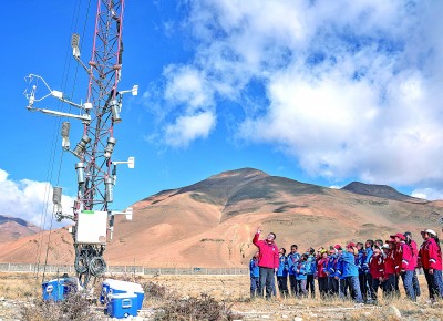 5月15日,珠峰站工作人員席振華給孩子們講解科學(xué)儀器的功能作用。當(dāng)日,西藏日喀則市定日縣扎西宗鄉(xiāng)完全小學(xué)的學(xué)生來到中國(guó)科學(xué)院珠穆朗瑪大氣與環(huán)境綜合觀測(cè)研究站(簡(jiǎn)稱“珠峰站”),參加主題為“遇見科學(xué) 遇見青藏高原”的公眾科學(xué)日活動(dòng)。孩子們參觀科學(xué)觀測(cè)儀器,零距離感受“第二次青藏科考”,在重點(diǎn)實(shí)驗(yàn)室聽了一堂生動(dòng)的科學(xué)課。新華社記者 孫非攝