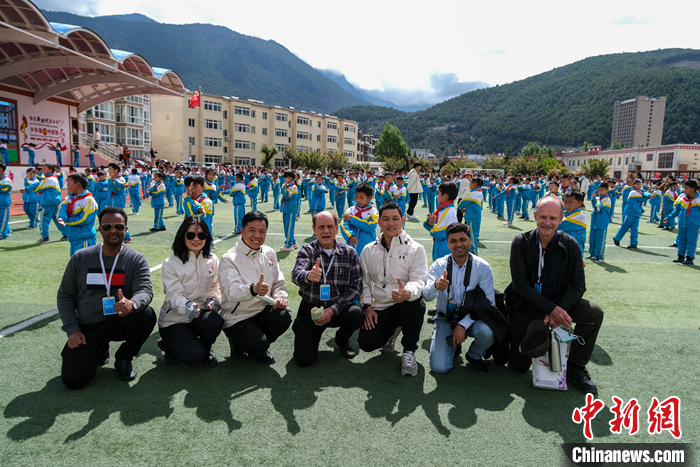 由尼泊爾、緬甸、菲律賓、莫桑比克、斐濟(jì)、委內(nèi)瑞拉、印度尼西亞、孟加拉國(guó)等多國(guó)駐華大使、公使,以及外籍專家、學(xué)者等組成的團(tuán)隊(duì)18日在西藏自治區(qū)林芝市第二小學(xué)參觀訪問(wèn),現(xiàn)場(chǎng)聽(tīng)孩子們彈奏扎念琴、體驗(yàn)藏文書(shū)法等。