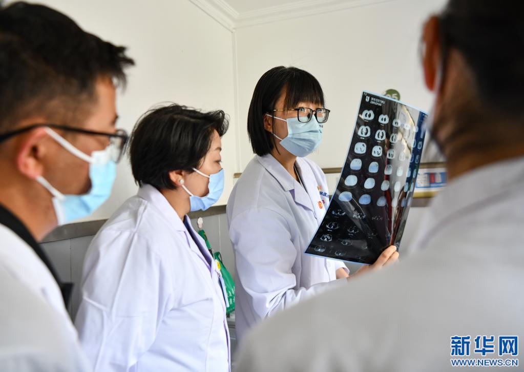 拉薩市人民醫(yī)院呼吸與危重癥醫(yī)學(xué)科主任楊蘇喬(右二)查房會(huì)診(4月28日攝)。新華社記者 晉美多吉 攝