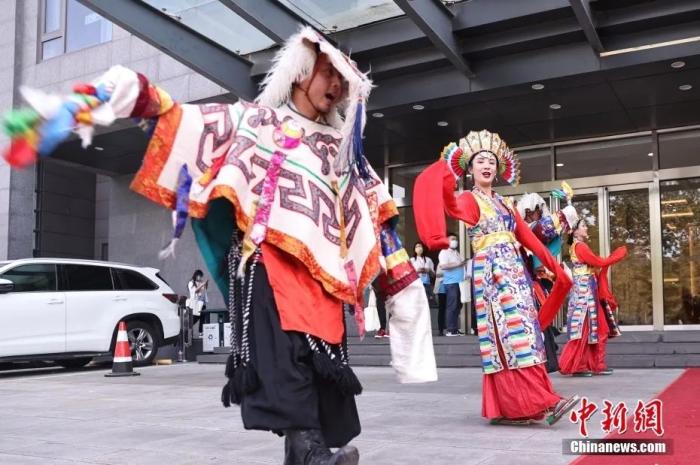 5月23日,“2023·中國(guó)西藏發(fā)展論壇”在北京舉行。會(huì)場(chǎng)外,活潑獨(dú)特的藏式迎賓舞蹈、展示西藏人文自然風(fēng)貌的圖片,已在論壇開幕前預(yù)熱起探討西藏新發(fā)展的氛圍。圖為藏式迎賓舞蹈。中新社記者 蔣啟明 攝